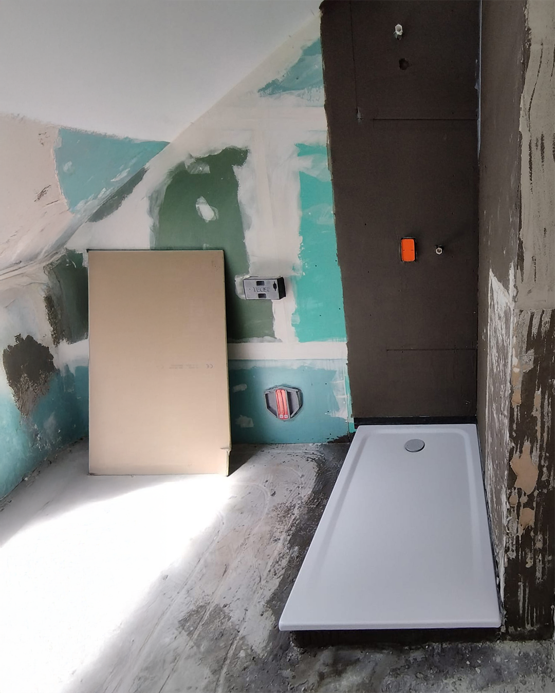 - Einputzen der Elektro- & Sanitäranschlüsse