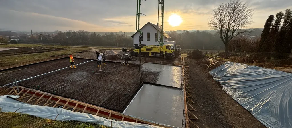 Aktueller Bautenstand bei dem Neubau eines großzüg-igen Einfamilienhauses im Brutalismus-Stil im Raum Alzey-Worms… Einrichten der Baustelle Streifenweises Abtragen und Lagern des Oberboden Ausheben der Baugrube Herstellen des Grobplanums Einbauen und Verdichten der Sauberkeitsschicht Einbauen der Kiesfilterschicht Verlegen der Dämmung unter der Fundamentplatte Einbauen der Kiesfilterschicht Verlegen der Dämmung unter der Fundamentplatte Erstellen der Schalung für […]