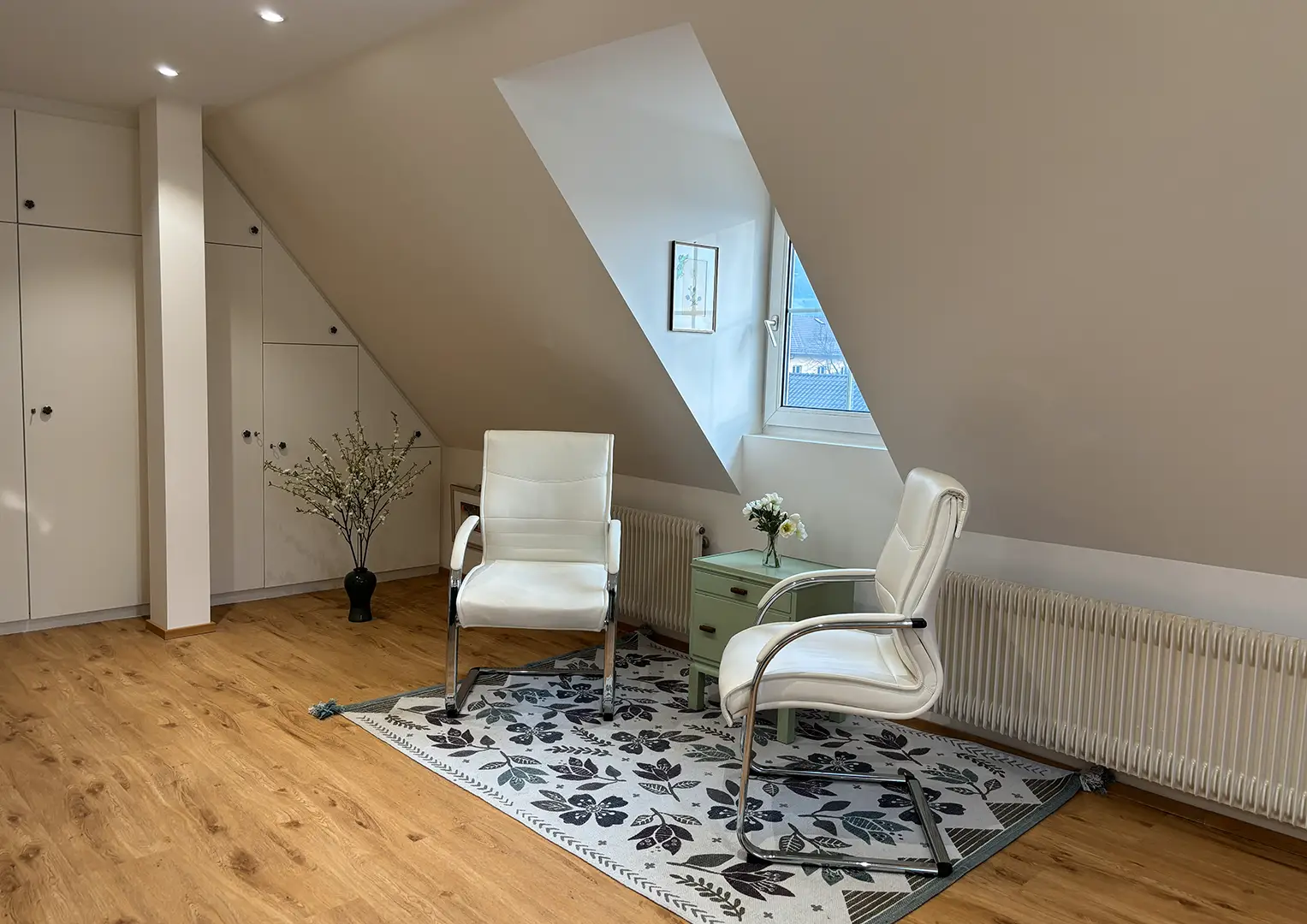 So entstand ein Behandlungsraum, der Funktion, Atmosphäre und gestalterische Klarheit vereint und einen Ort des Wohlbefindens für Beratung, Behandlung und Rückzug schafft.