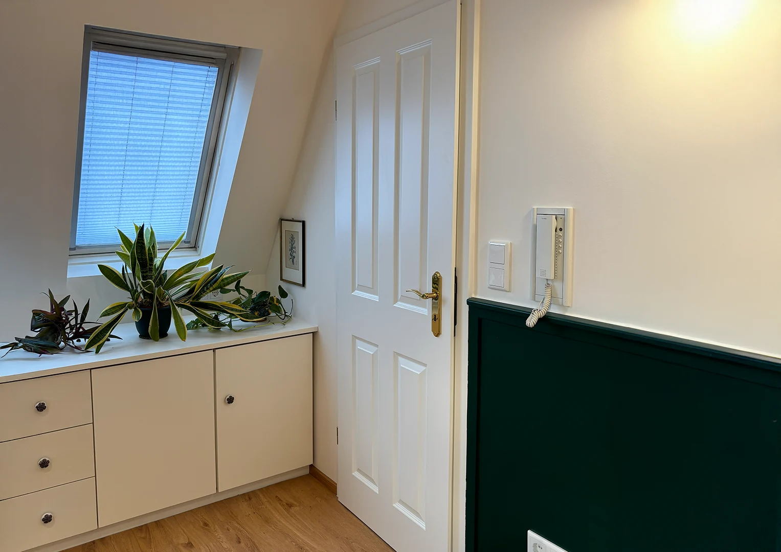 Seit der Fertigstellung im Dezember 2025 wird das Dachgeschoss als ayuverdische Praxis genutzt. Die helle, klare Gestaltung wird durch ausgewählte gestalterische Elemente mit Anklängen an den Jugendstil ergänzt, die sich sensibel auf die Architektur des Bestandsgebäudes beziehen. So entstand ein ruhiger und einladender Behandlungsraum, der Patientinnen und Patienten eine angenehme Atmosphäre bietet.