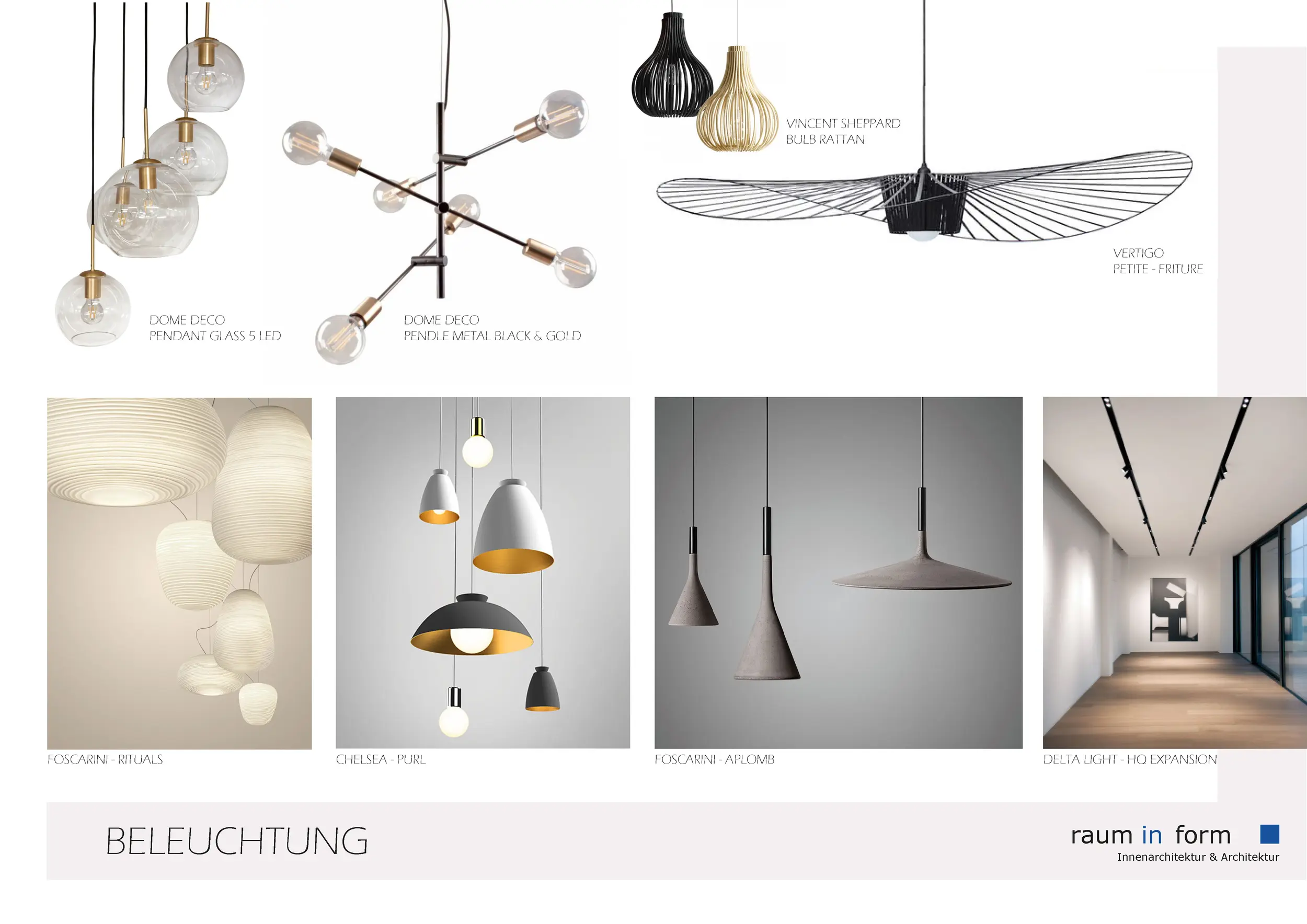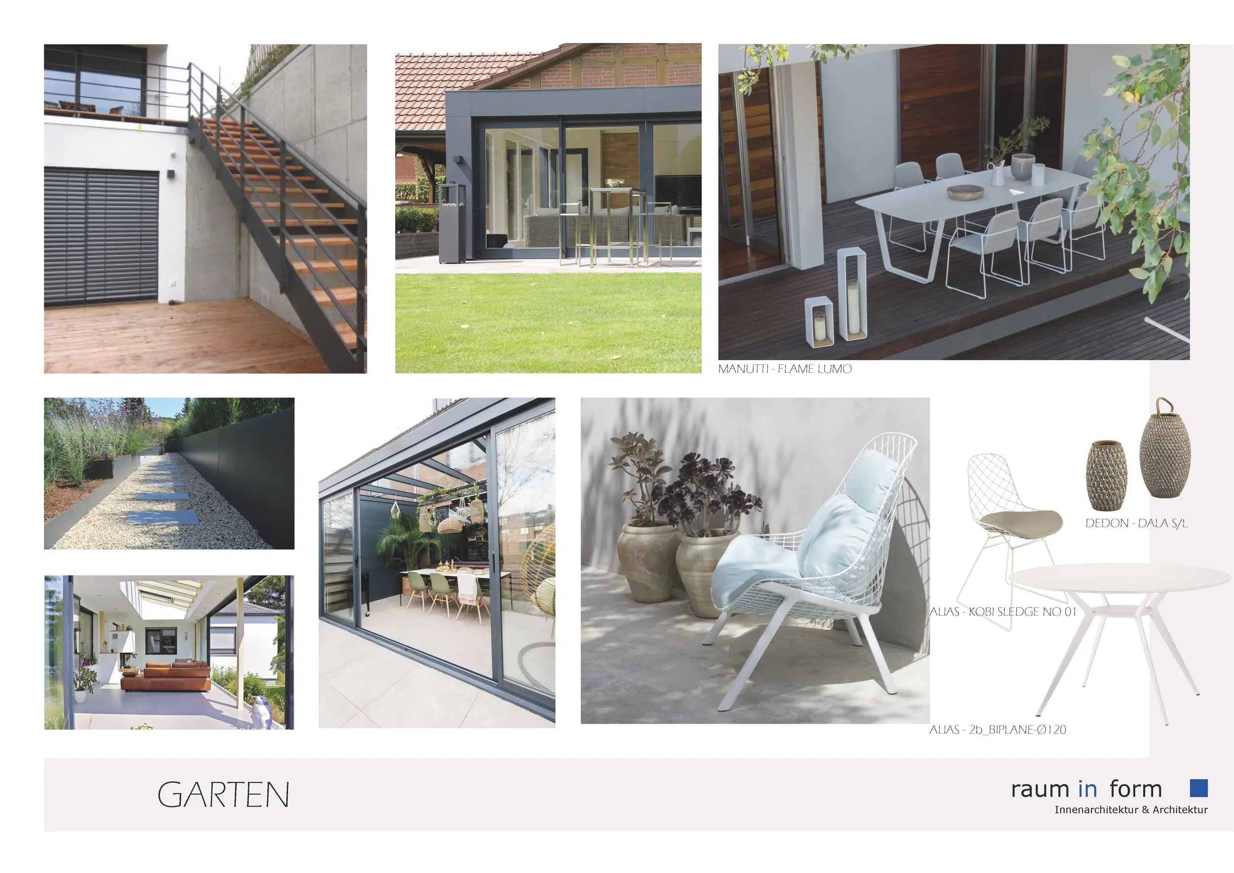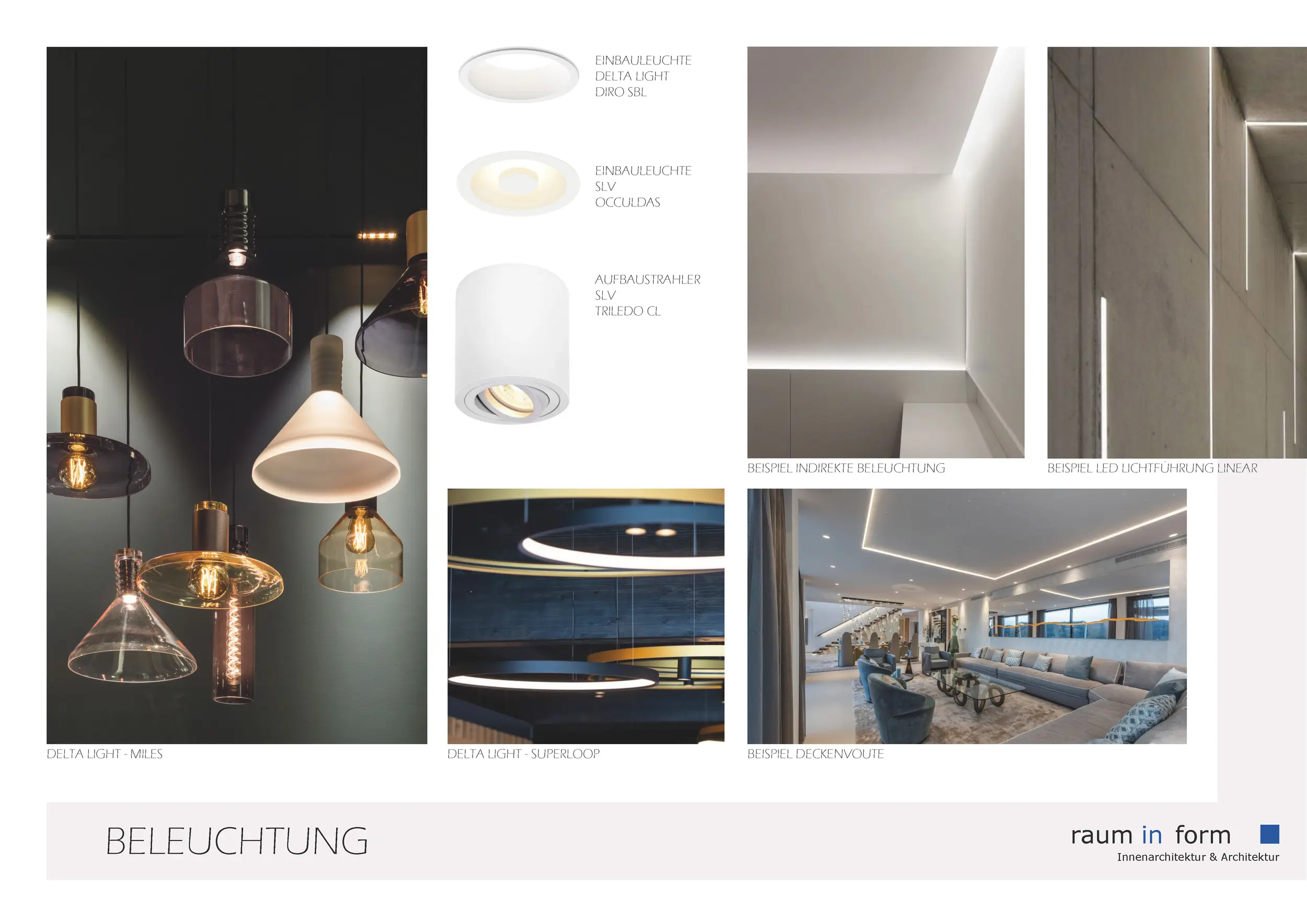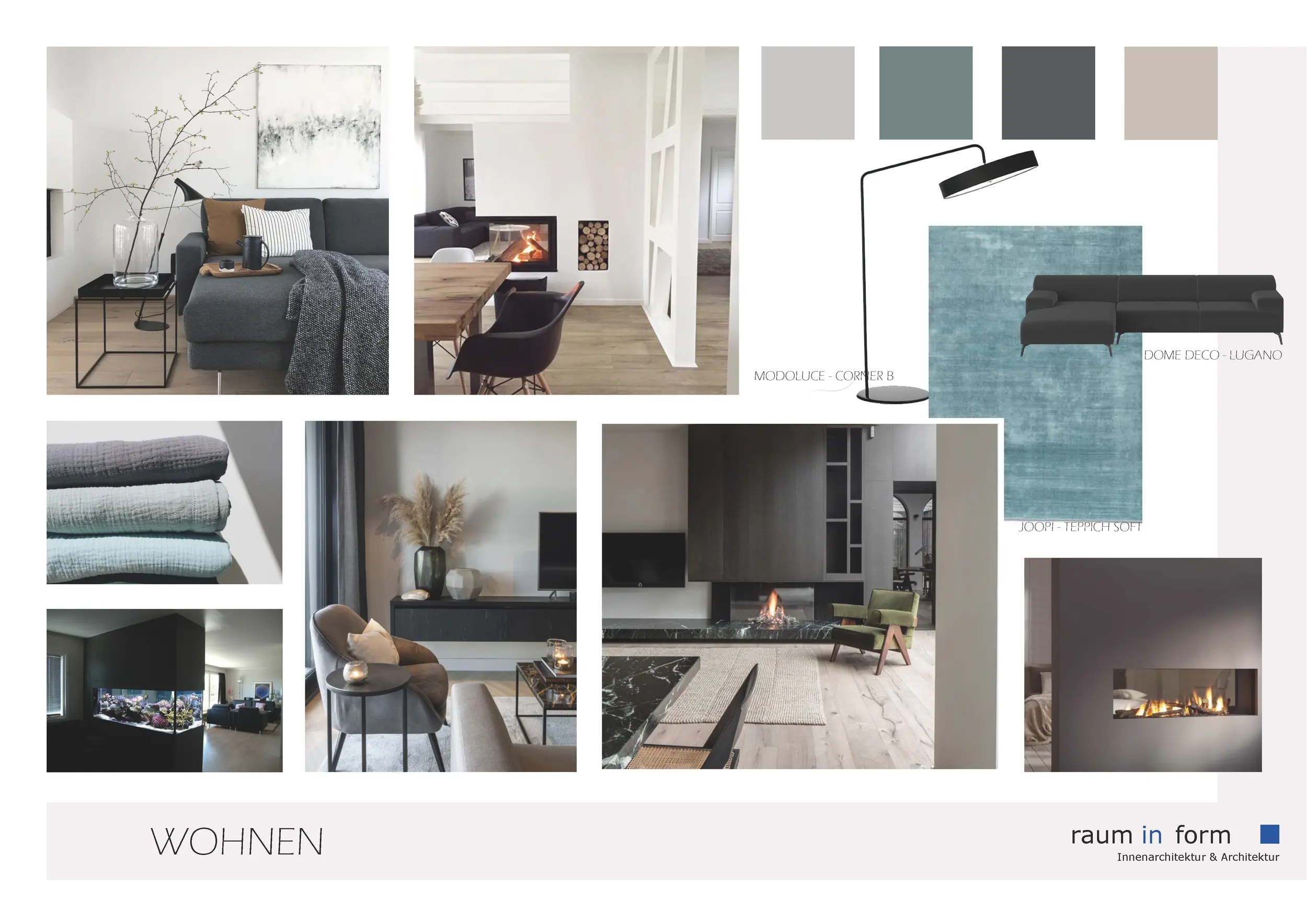 Ergänzend zu den Konzeptplanungen entwickelte wurde „raum in form – Innenarchitektur & Architektur“ auf Wunsch der Bauherren mehrere Moodboards. In zuvor definierten Kategorien wurden jeweils A3-Layouts mit material- und gestaltungsbezogenen Vorschlägen erstellt, die auf das Projekt und die Vorlieben der Bauherren abgestimmt waren.