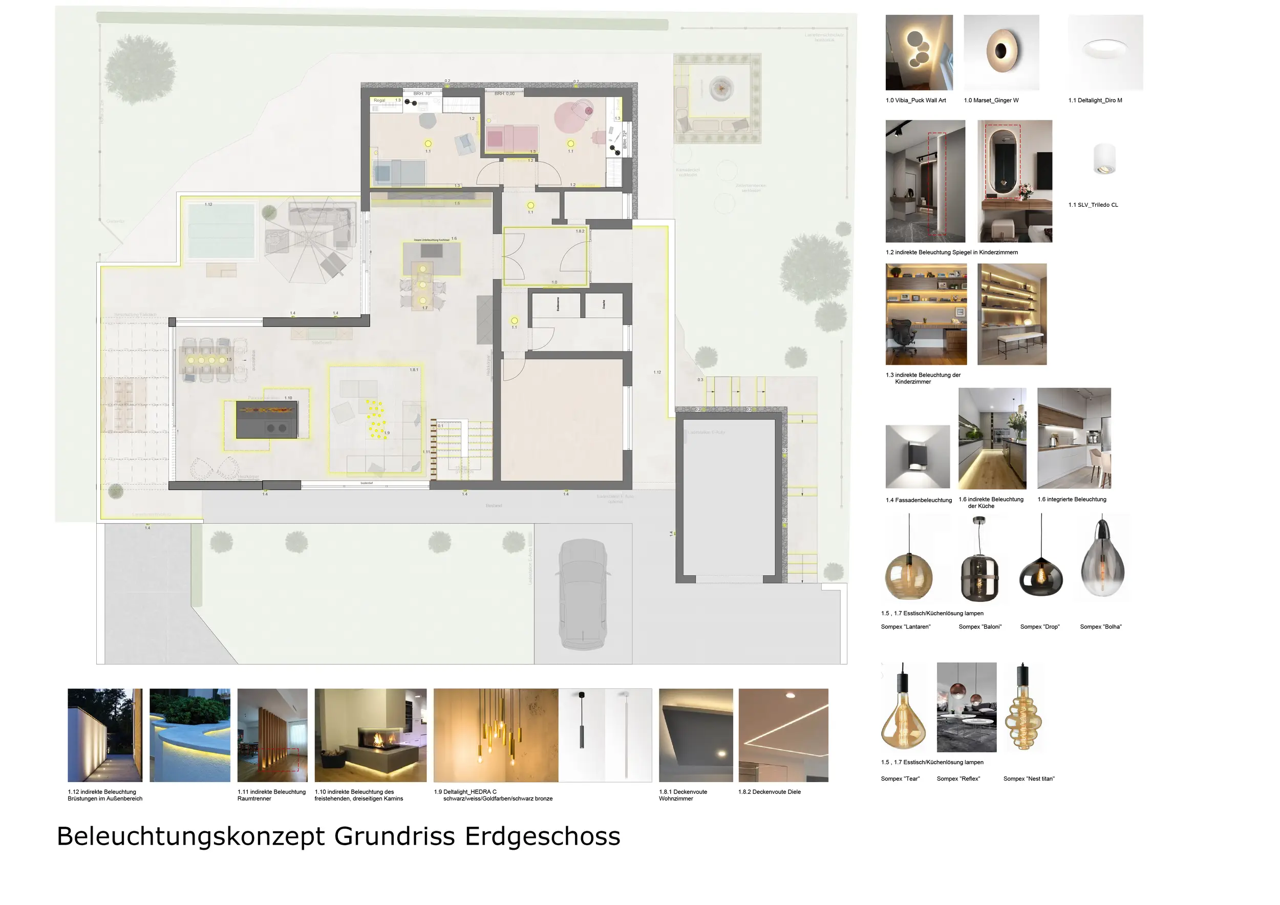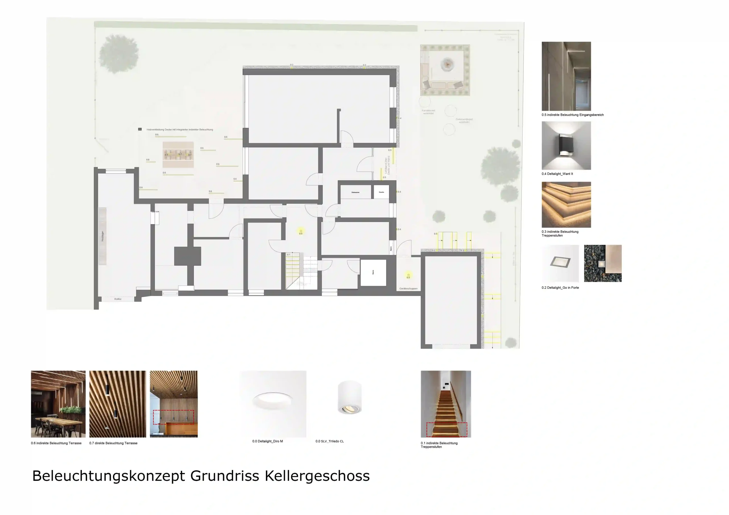 Das vorliegende Beleuchtungskonzept basiert auf dem finalen Gestaltungskonzept und verfolgt das Ziel, eine harmonische sowie funktionale Lichtgestaltung zu schaffen, die sowohl ästhetischen Ansprüchen als auch den praktischen Anforderungen der einzelnen Räume gerecht wird.