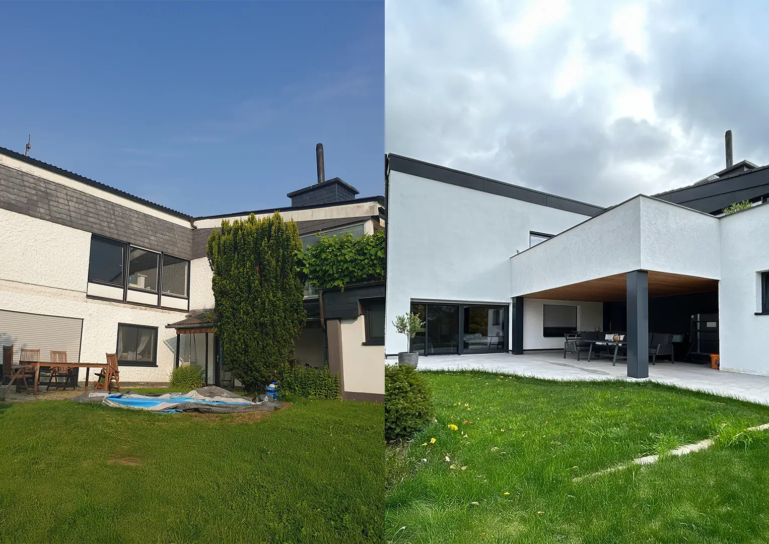 Das Haus war bereits zuvor in einzelnen Bereichen modernisiert worden, insbesondere die Einliegerwohnung, jedoch sollten nun die Wohnräume, der Wintergarten, der Balkon sowie die Außenbereiche vollständig neu geplant und gestaltet werden. Ziel der Bauherren war es, den Wohnkomfort zu steigern, die Architektur des Hauses an ihre persönlichen Vorstellungen anzupassen und gleichzeitig den Wert des Objektes nachhaltig zu erhöhen.