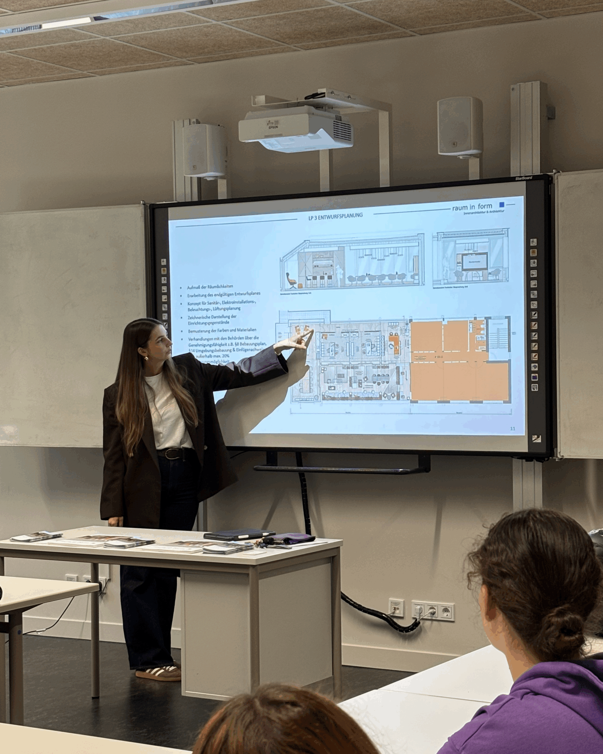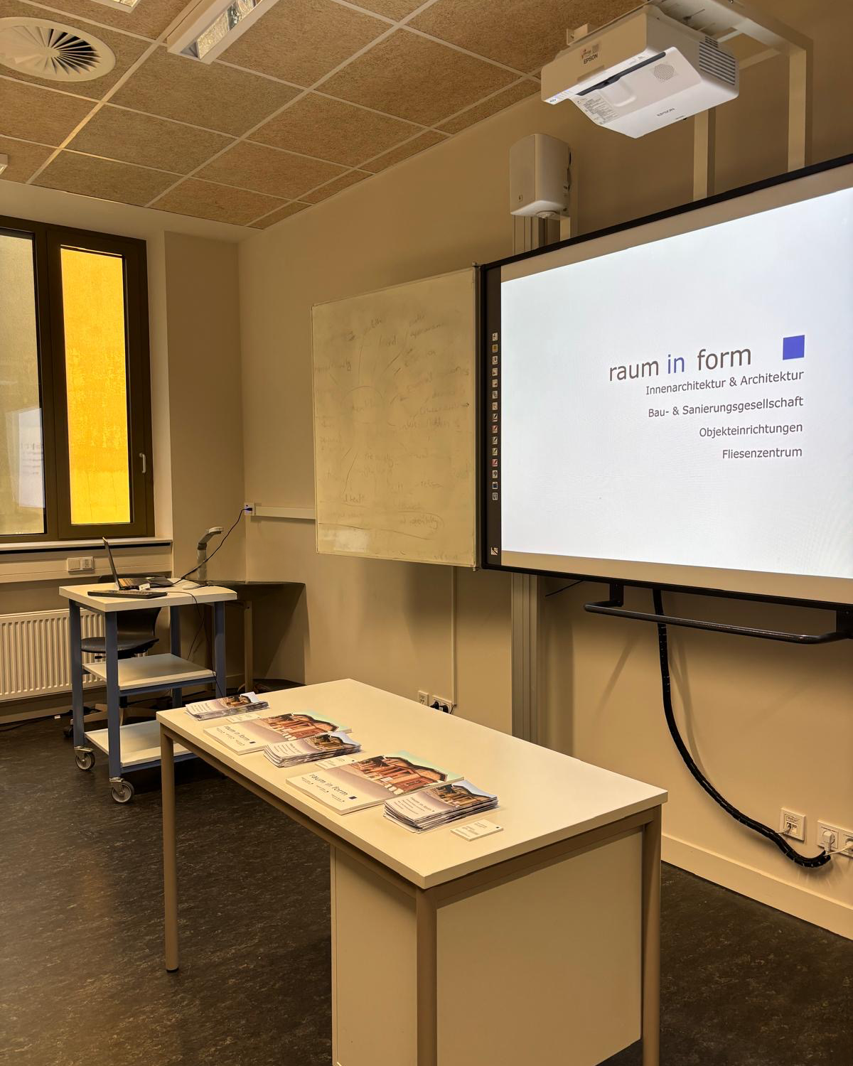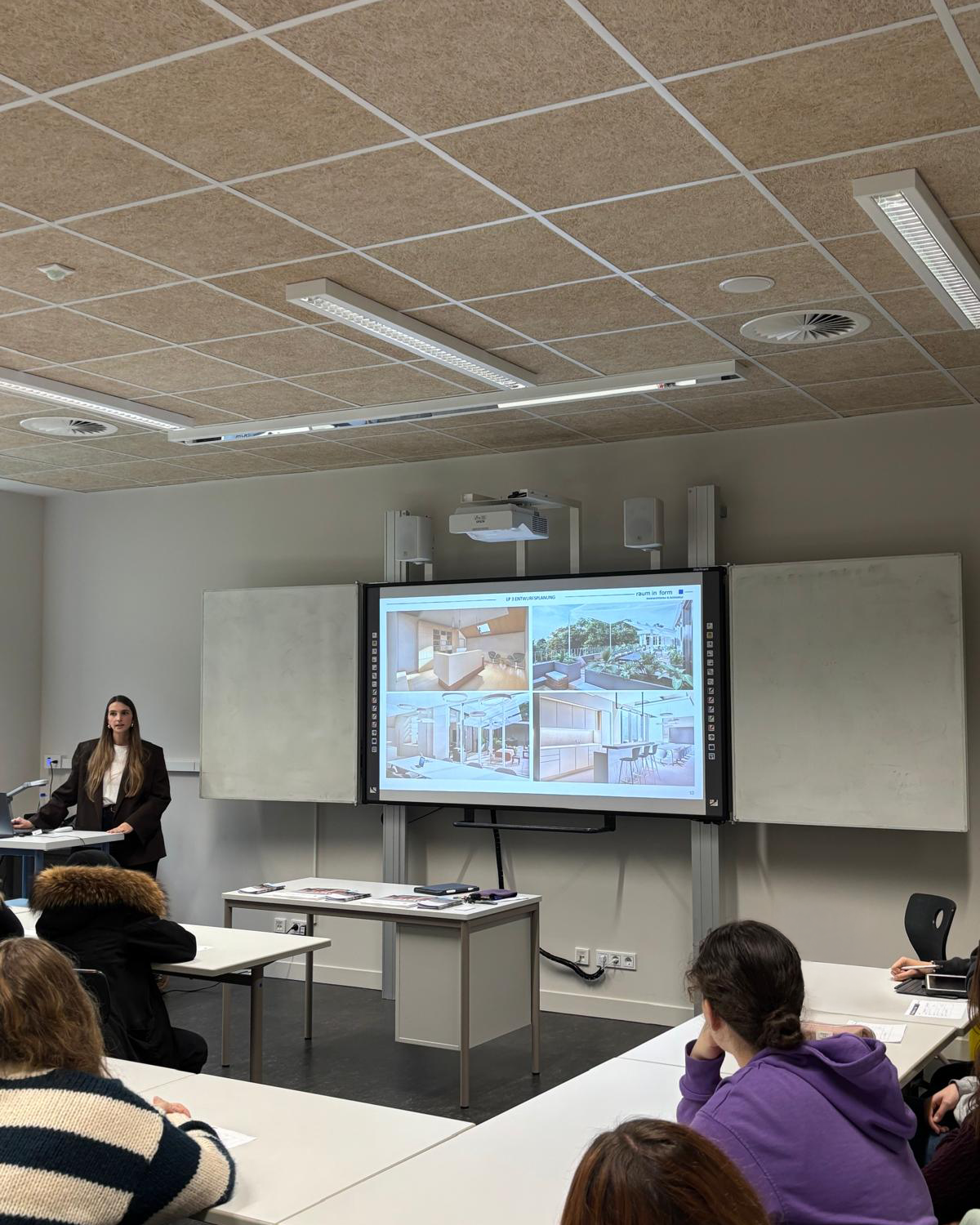 In drei kurzen Präsentationen zeigten wir die vielfältigen Aufgaben und Tätigkeiten in den Bereichen Office-Management und Buchhaltung, Innenarchitektur und Architektur, Objekteinrichtung sowie in dem Bereich Bauen und Sanieren und gaben dabei spannende Einblicke in unseren Arbeitsalltag.